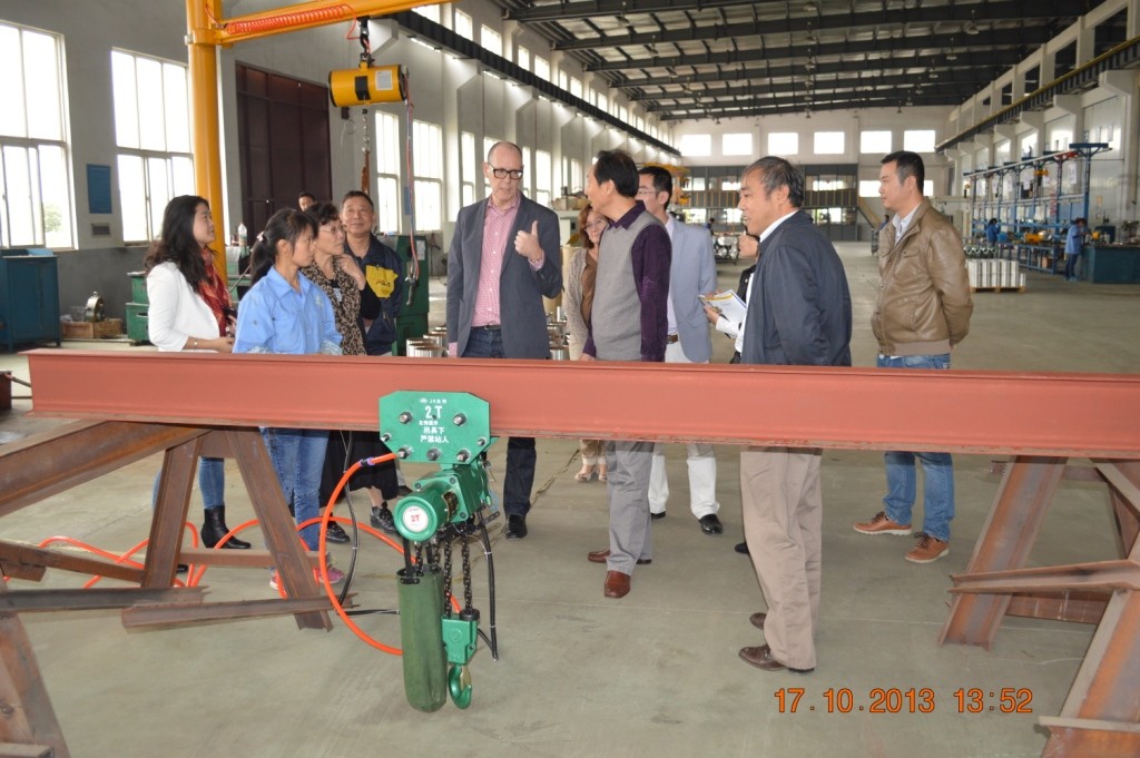 2013年10月17日,荷蘭Jo Duliens先生及其夫人(L&H起重機有限公司)、李保平女士(杭州龍盛機械有限公司總經(jīng)理)和胡媛女士(翻譯-杭州龍盛機械有限公司業(yè)務(wù)經(jīng)理)來我公司生產(chǎn)基地進(jìn)行合作交流與考察活動。